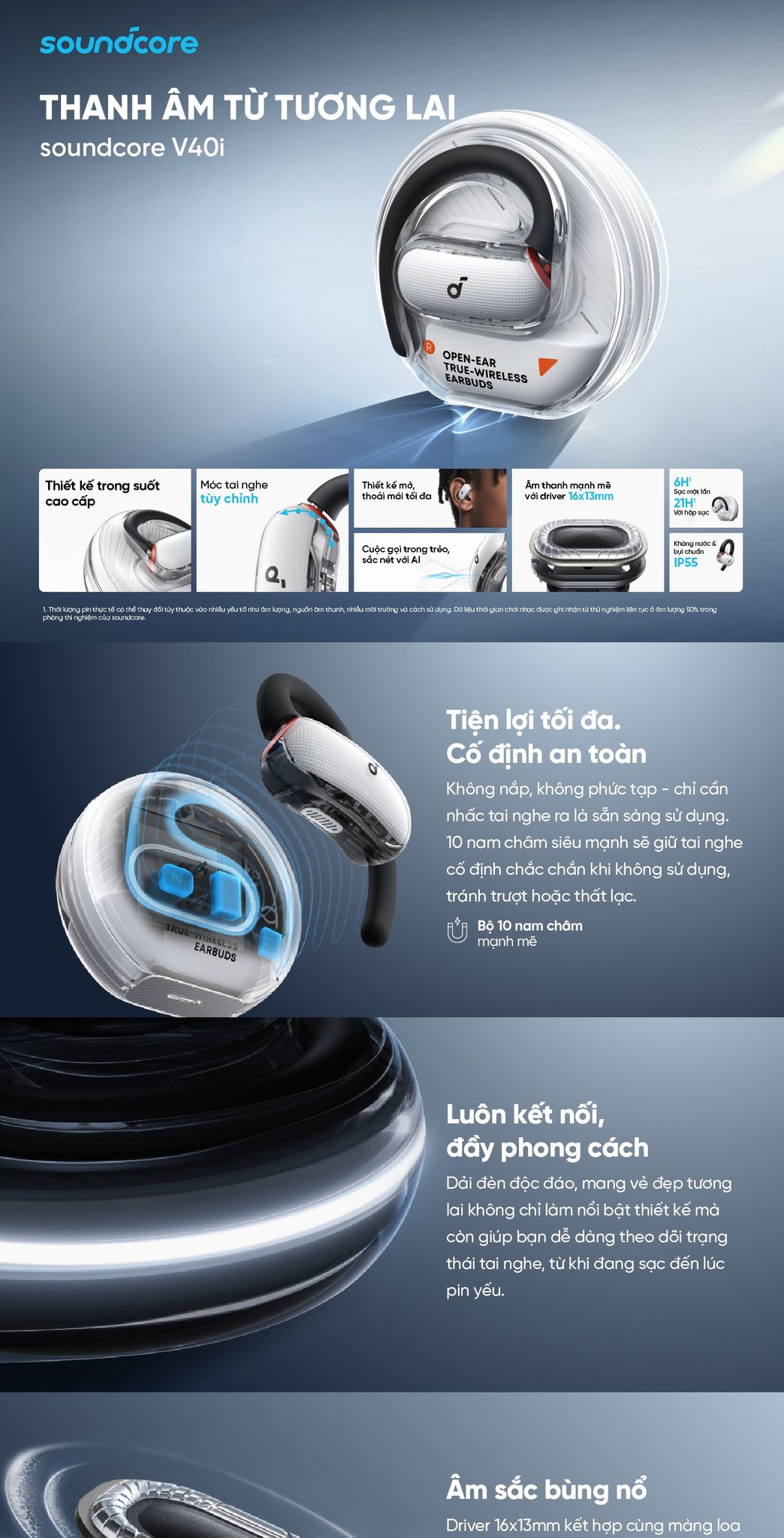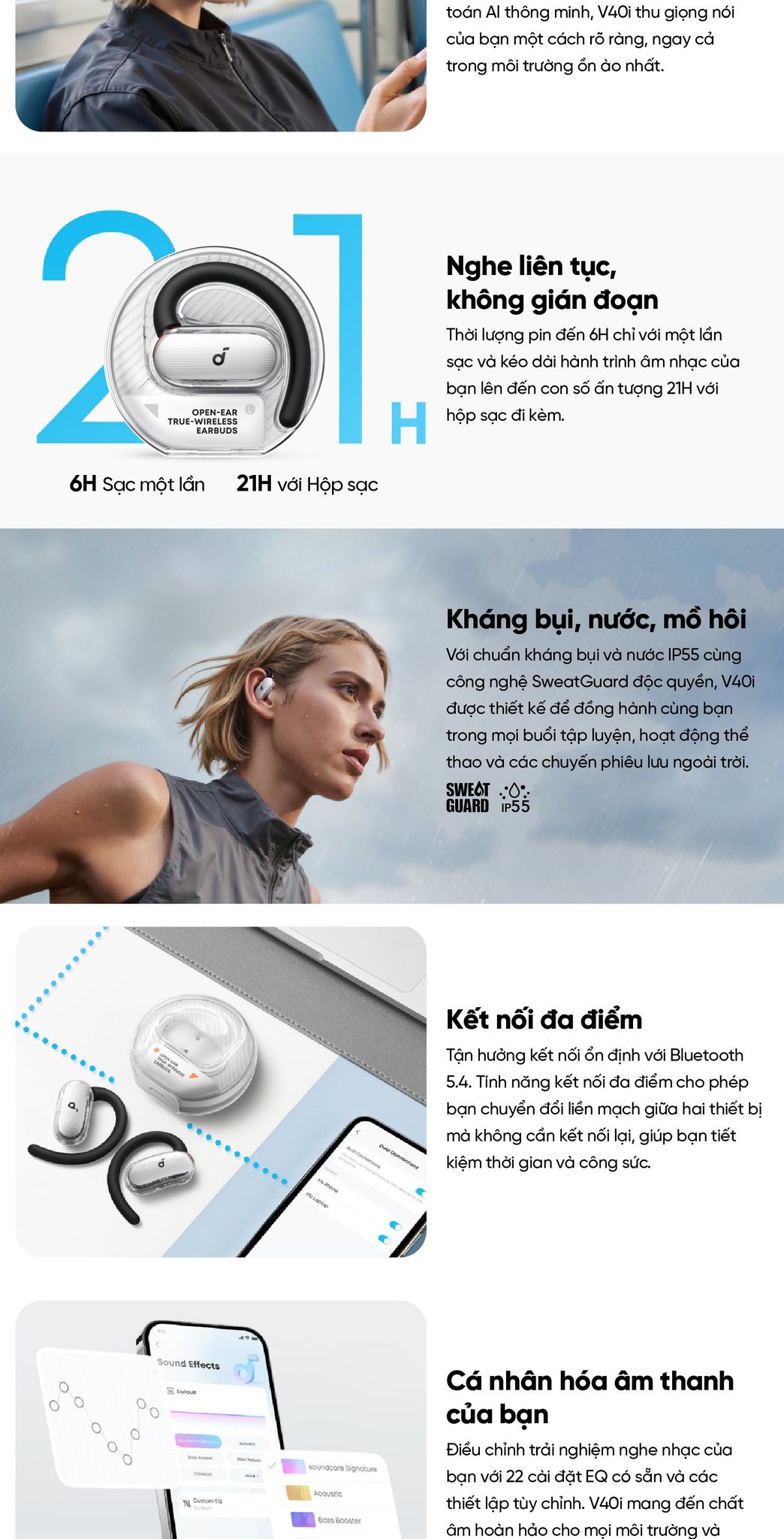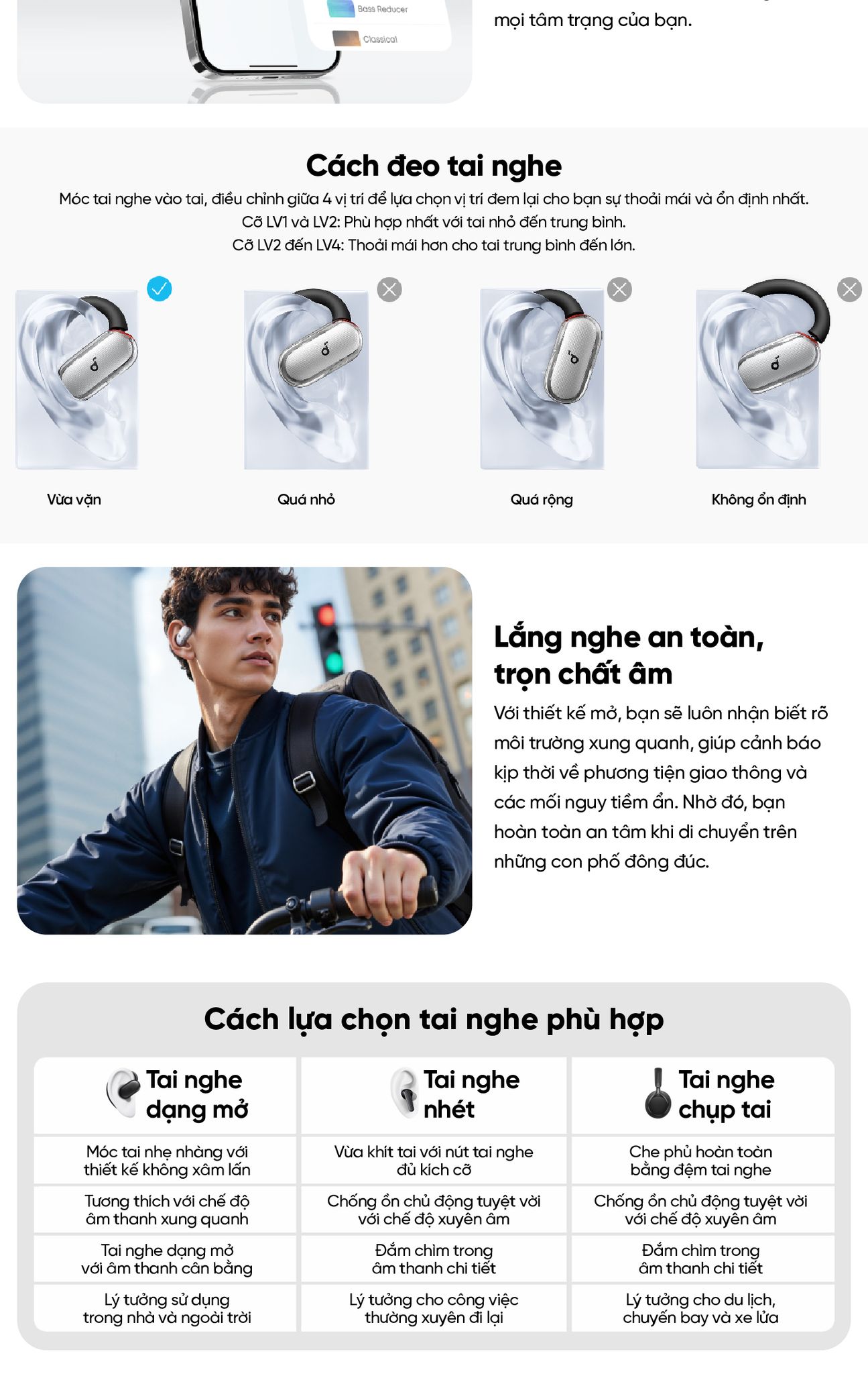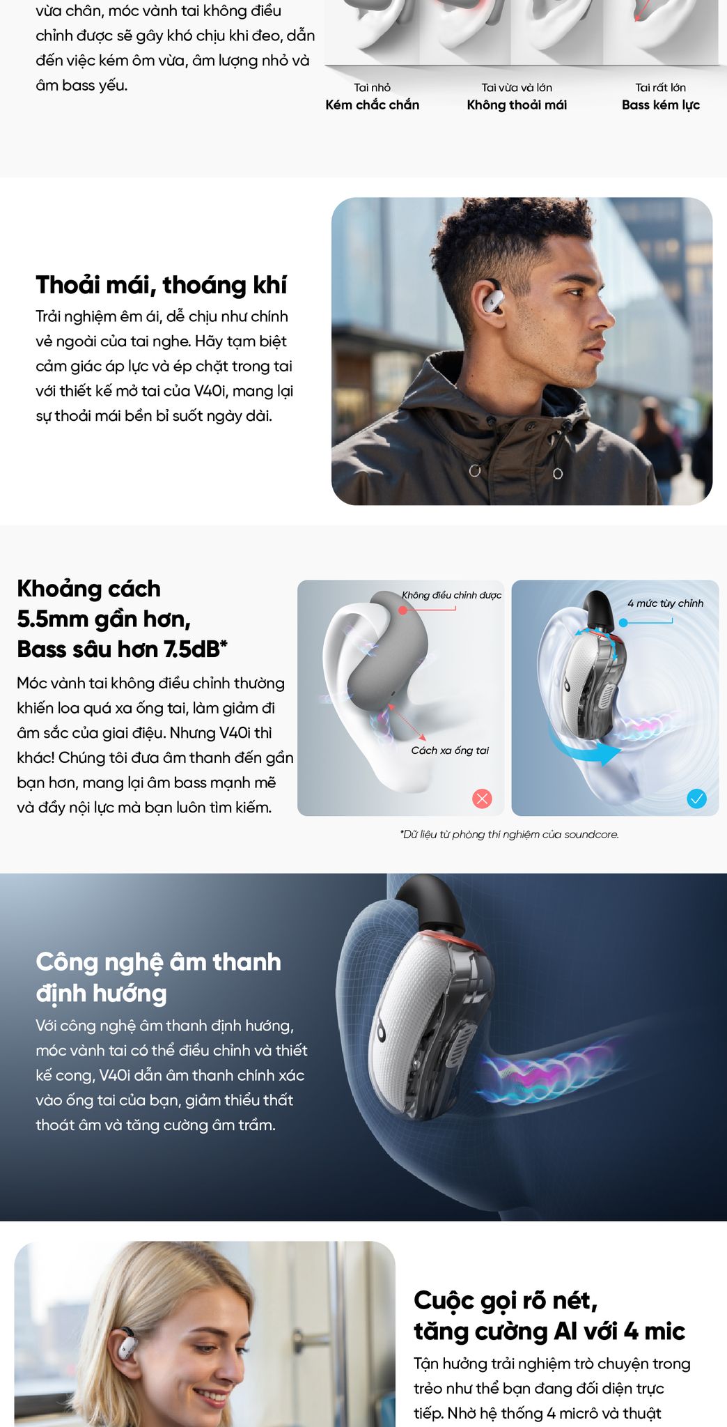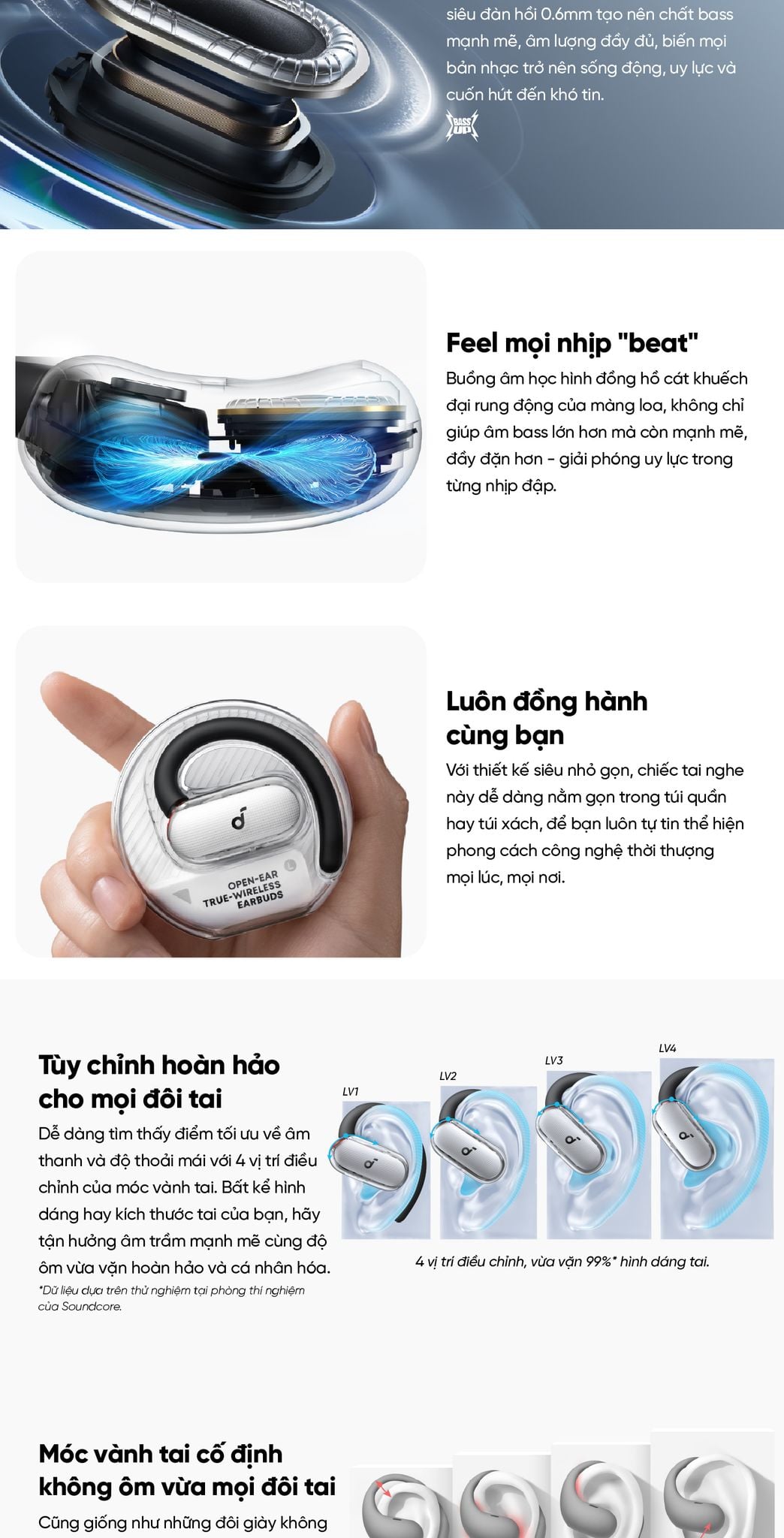 - Móc tai 4 mức điều chỉnh, linh hoạt phù hợp với mọi loại tai.